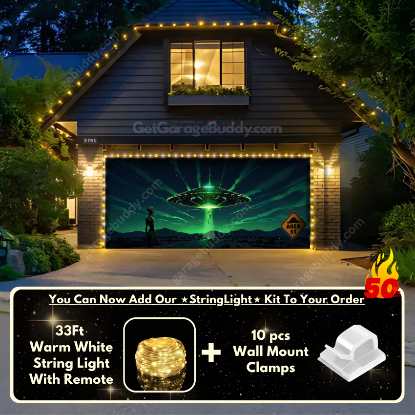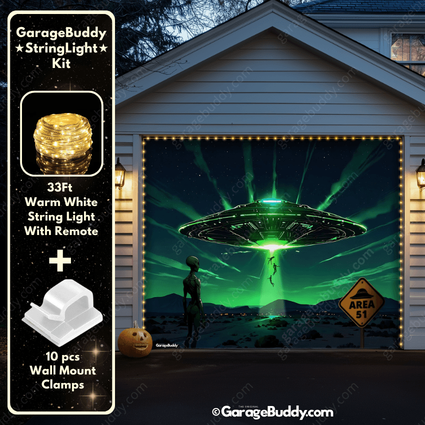 Picture the shock and awe when neighbors walk past your garage glowing with UFO beams, abducted figures, and a creepy alien silhouette. This Halloween garage door cover will make your home the ultimate haunted landmark of the season, proving that not all scares come from this world.