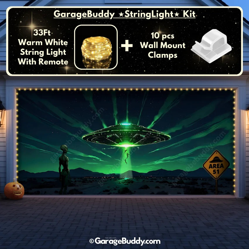 Picture the looks on their faces when they see the creepiest house on the block—complete with glowing lights, eerie UFO vibes, and your Alien Abduction Halloween Garage Door Cover. Get ready for your home to become the ultimate Halloween masterpiece, sparking chills, awe, and endless neighborhood chatter.