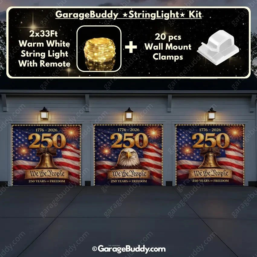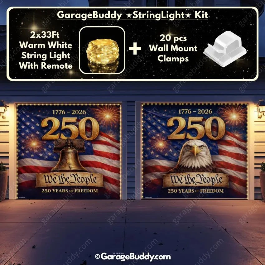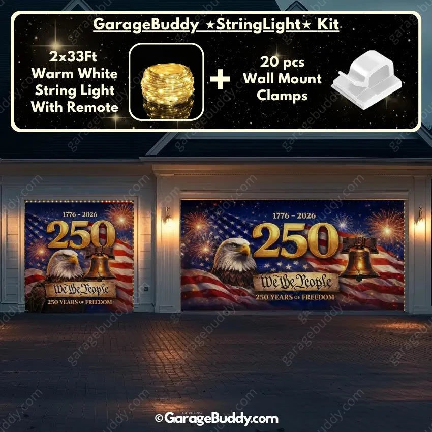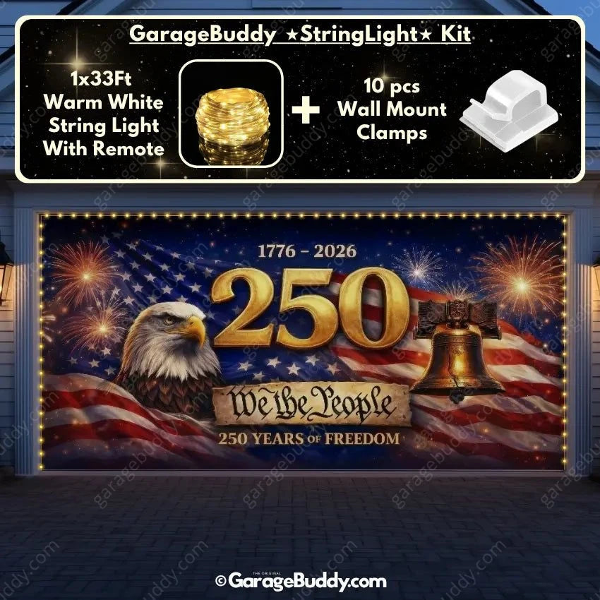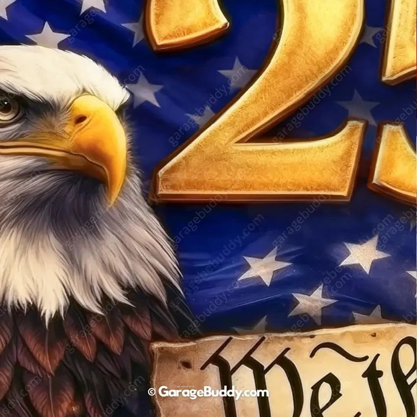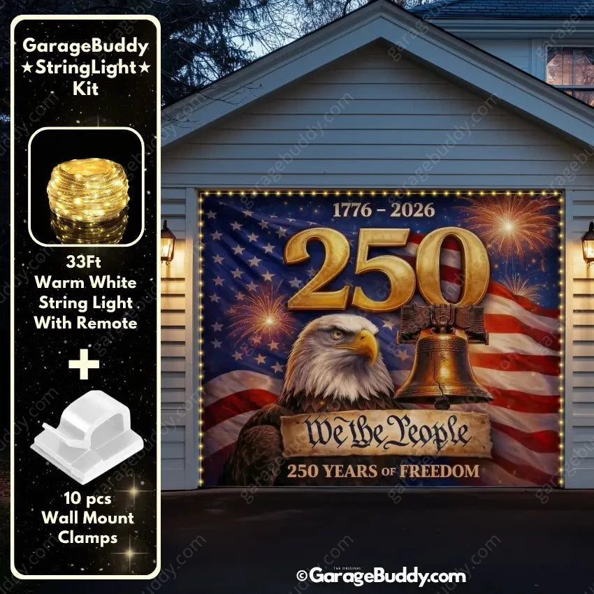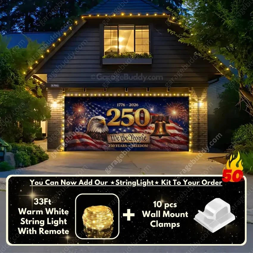 This Freedom 250 Limited Edition garage door cover features the American flag, eagle, and Liberty Bell design with “We The People” detail. Perfect for the USA's 250th anniversary, 4th of July decorations, Memorial Day, and patriotic home decor. A bold patriotic display that celebrates 250 years of American freedom, history, and pride.