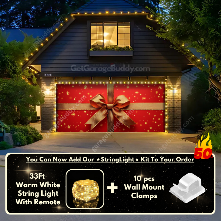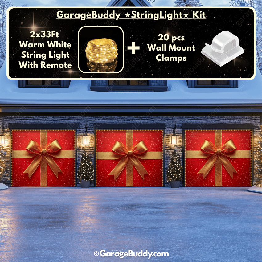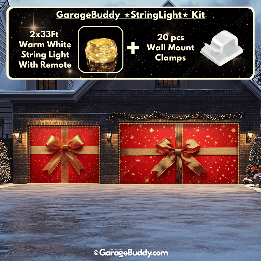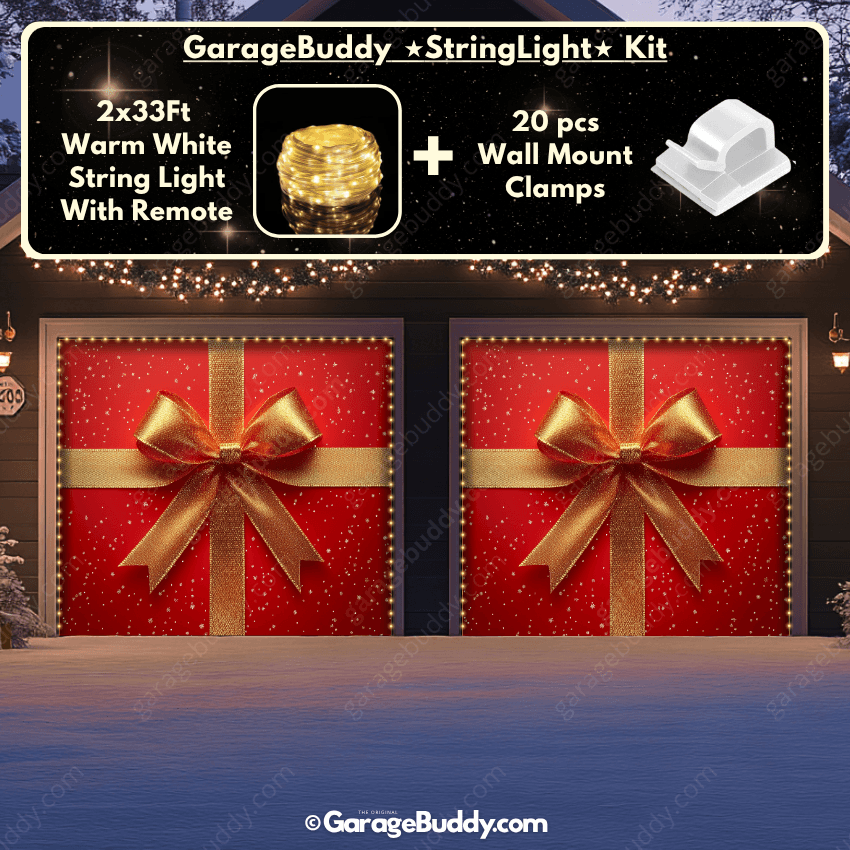 Now you can add the GarageBuddy string light kit to your order at 50% off and turn your garage into a true showstopper. Pair your Christmas garage door cover with glowing outdoor Christmas lights for a dazzling effect that spreads cheer far and wide.