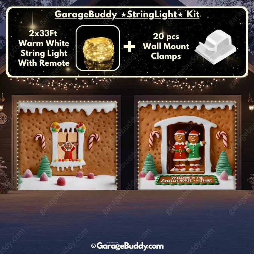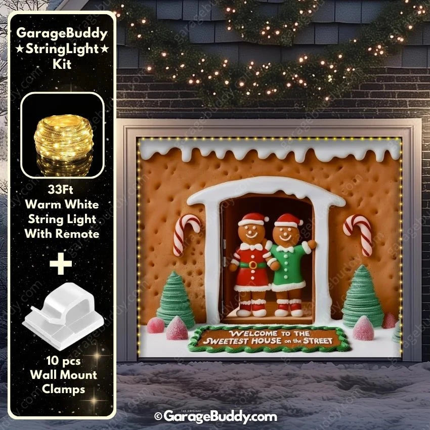 You now have the option to add the GarageBuddy string light kit to your order at 50% off and turn your garage into a true showstopper. Pair your festive garage door cover with warm, glowing outdoor Christmas lights for the ultimate North Pole effect.