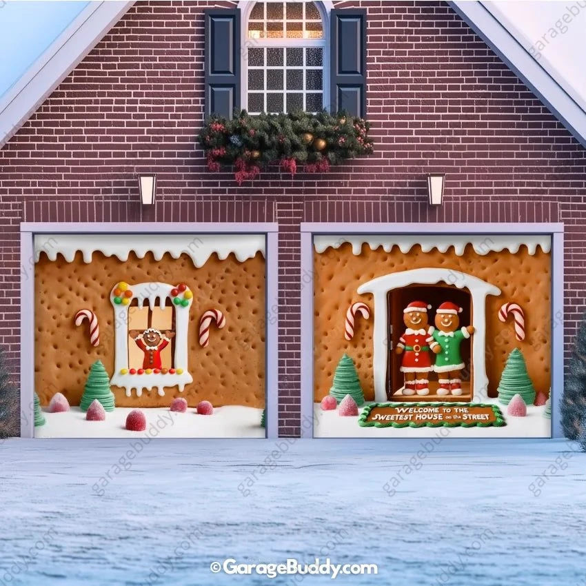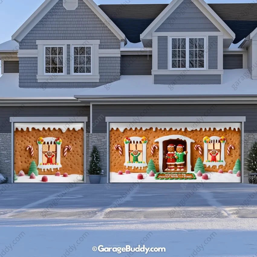Introducing the Coolest Thing Since Reindeer on Roofs: 'Gingerbread Family Christmas Garage Door Cover!' 🎄🚪
