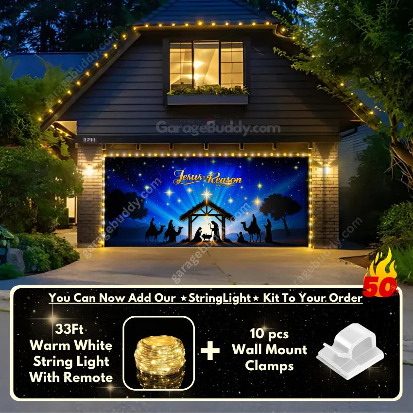 You now have the option to add the GarageBuddy string light kit to your order at 50% off and turn your garage into a true showstopper. Pair your festive garage door cover with warm, glowing outdoor Christmas lights for the ultimate North Pole effect.