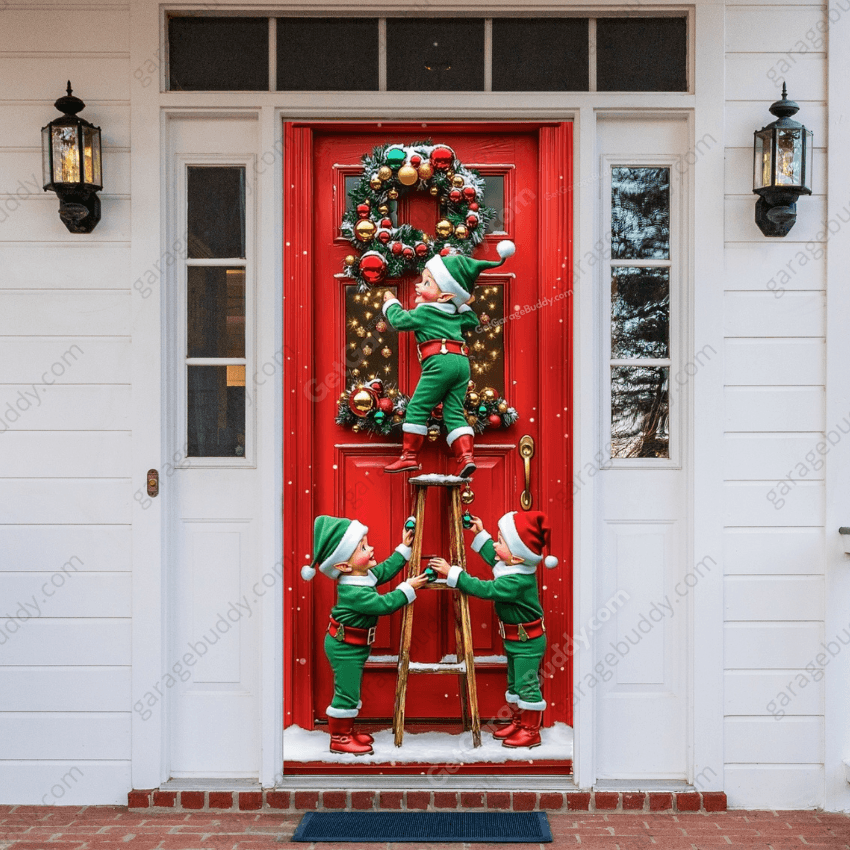 Unfold your Santa’s Elves Christmas Front Door Cover straight out of the package. Stretch & Snap—thanks to the elastic corners, all you need to do is stretch each one over your door’s top and bottom corners. No nails, tape, or sticky mess required. Just stretch and snap, and your door is instantly transformed into a festive masterpiece.