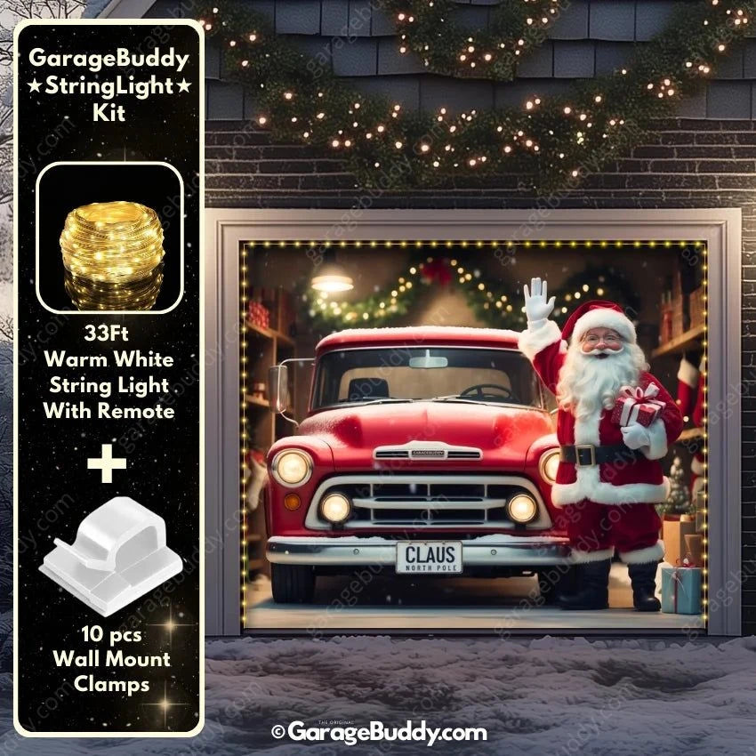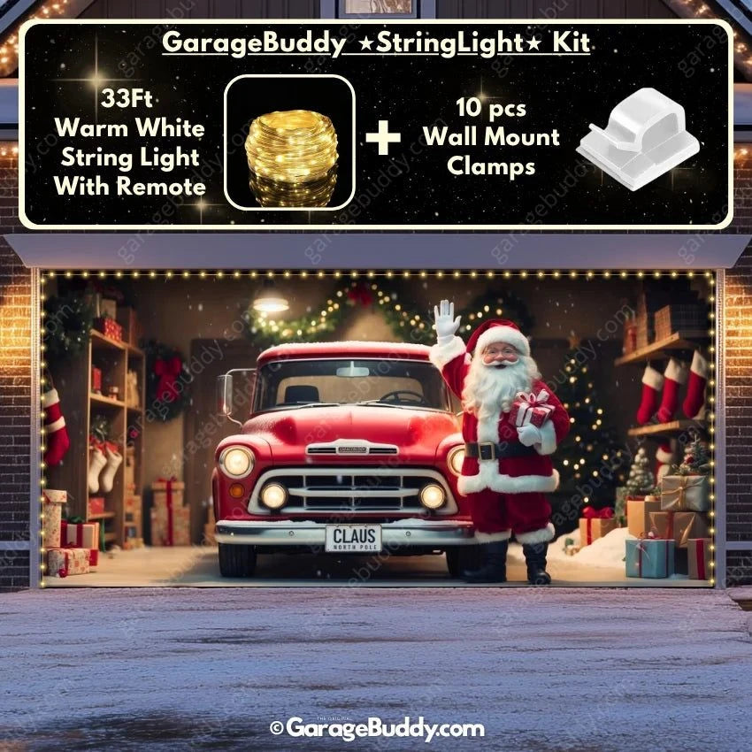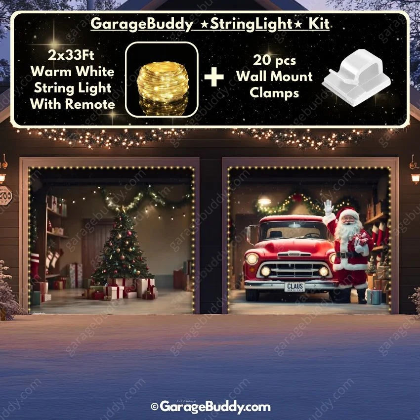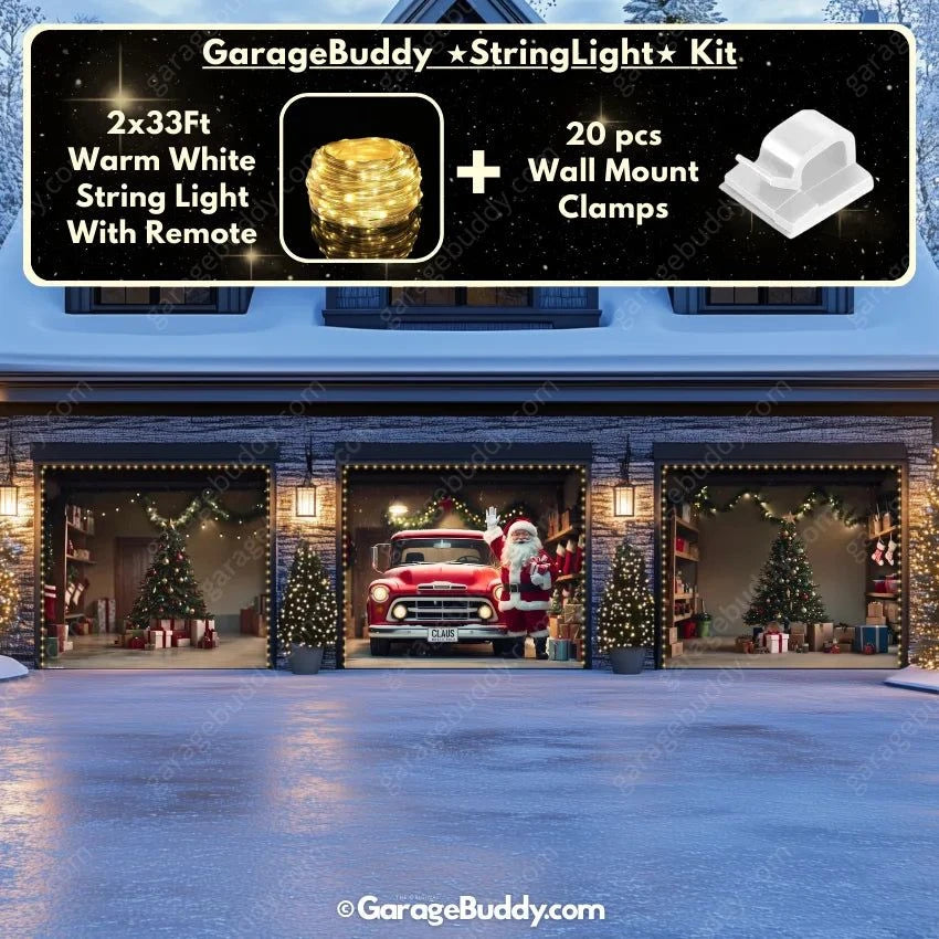 You now have the option to add the GarageBuddy string light kit to your order at 50% off and turn your garage into a true showstopper. Pair Santa’s Garage | Christmas Garage Door Cover with warm, glowing outdoor Christmas lights for the ultimate North Pole effect.