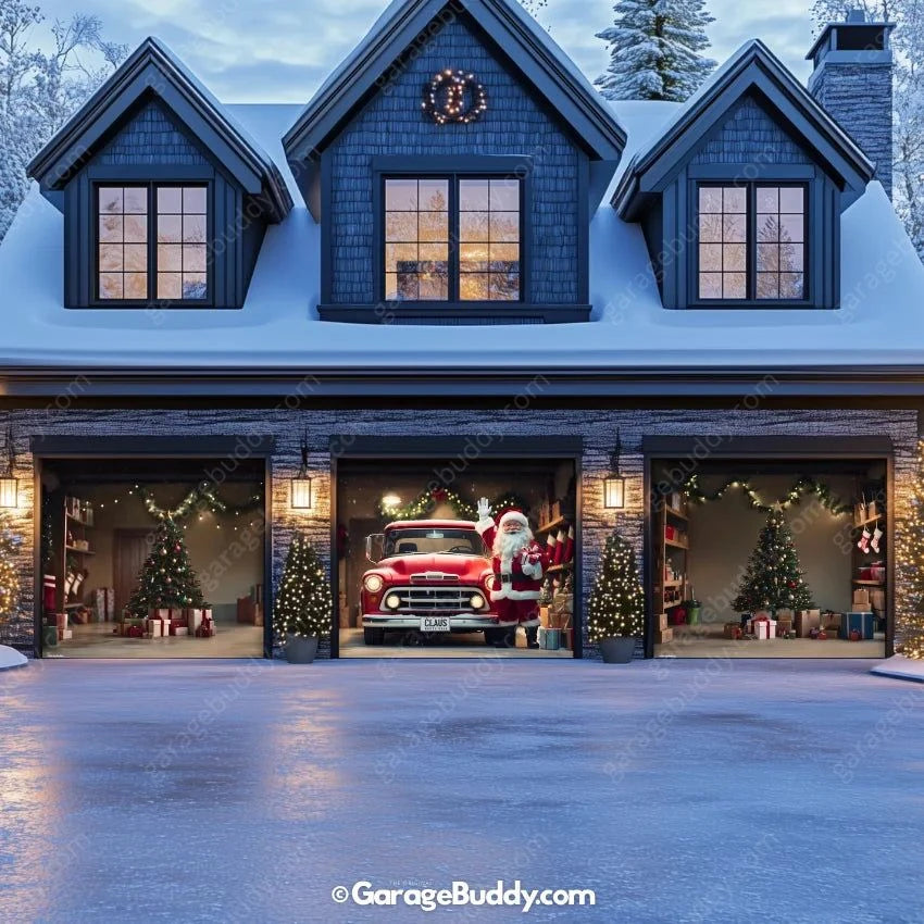 Get ready to hear the neighborhood gossip shift from Susie’s fruitcake to your epic Santa’s Garage Christmas Garage Door Cover that brings joy to the whole block.
