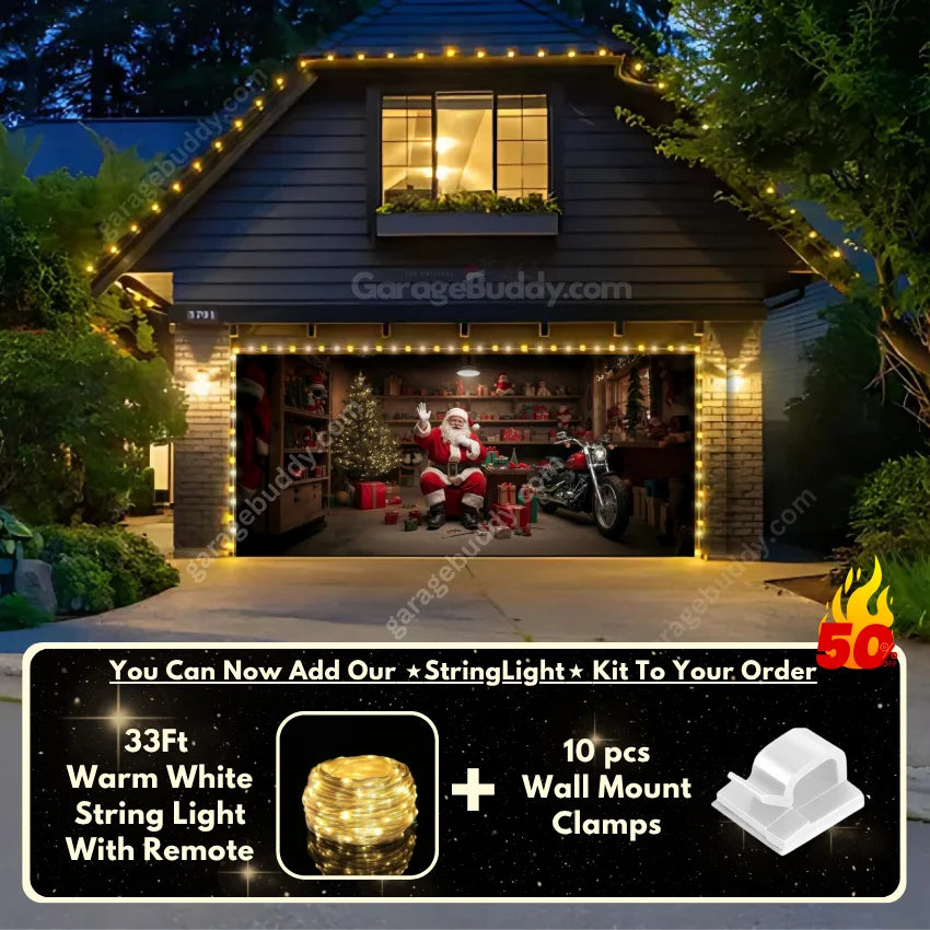 You now have the option to add the GarageBuddy string light kit to your order at 50% off and turn your garage into a true showstopper. Pair your festive garage door cover with warm, glowing outdoor Christmas lights for the ultimate North Pole effect.