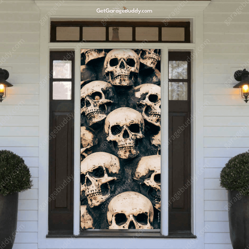 Give your family and friends the perfect backdrop for unforgettable Halloween photos. The Skulls Halloween Front Door Cover doesn’t just serve as simple Halloween porch décor—it transforms your entryway into a bone-chilling focal point, making your home the talk of the neighborhood this spooky season.