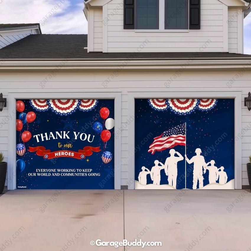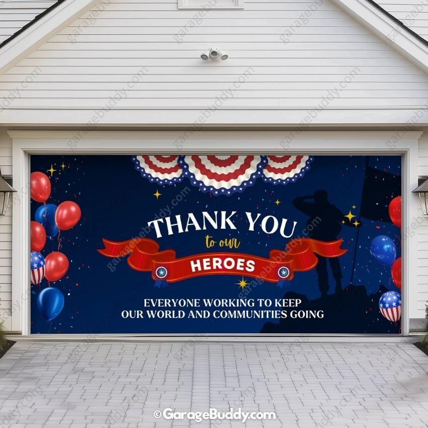 In times of uncertainty and challenge, there are those who stand strong—unwavering and selfless. The "Thank You Heroes Patriotic Garage Door Cover" is more than just décor; it’s a heartfelt tribute to the everyday heroes who protect, serve, and support our communities. Perfect for patriotic holidays, this design fits beautifully into your 4th of July decoration ideas and year-round patriotic displays.