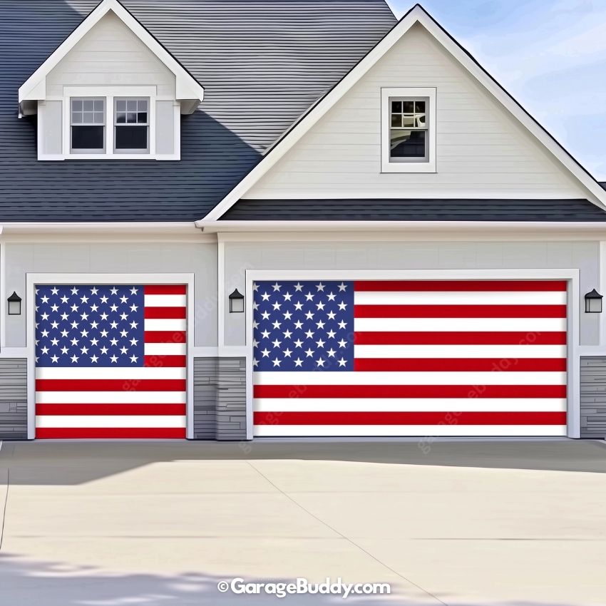 Looking for a unique gift for someone who loves the USA? This Patriotic Garage Door Cover makes a thoughtful present for Independence Day, Memorial Day, Veterans Day, or any patriotic celebration. Each package includes the garage cover and an installation kit. 🎁🇺🇸