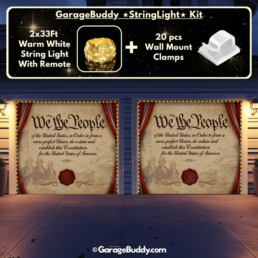 You now have an option to add the GarageBuddy string light kit to your order at 50% Off and turn your garage into a true winter wonderland. The kit includes 1x 33ft warm white string light, a remote control and 10x sticky wall mount clamps. The 2-Door garage option comes with 2 string light kits. The lights work on three AA batteries (not included), so you don't need to run around finding electrical outlets.Â