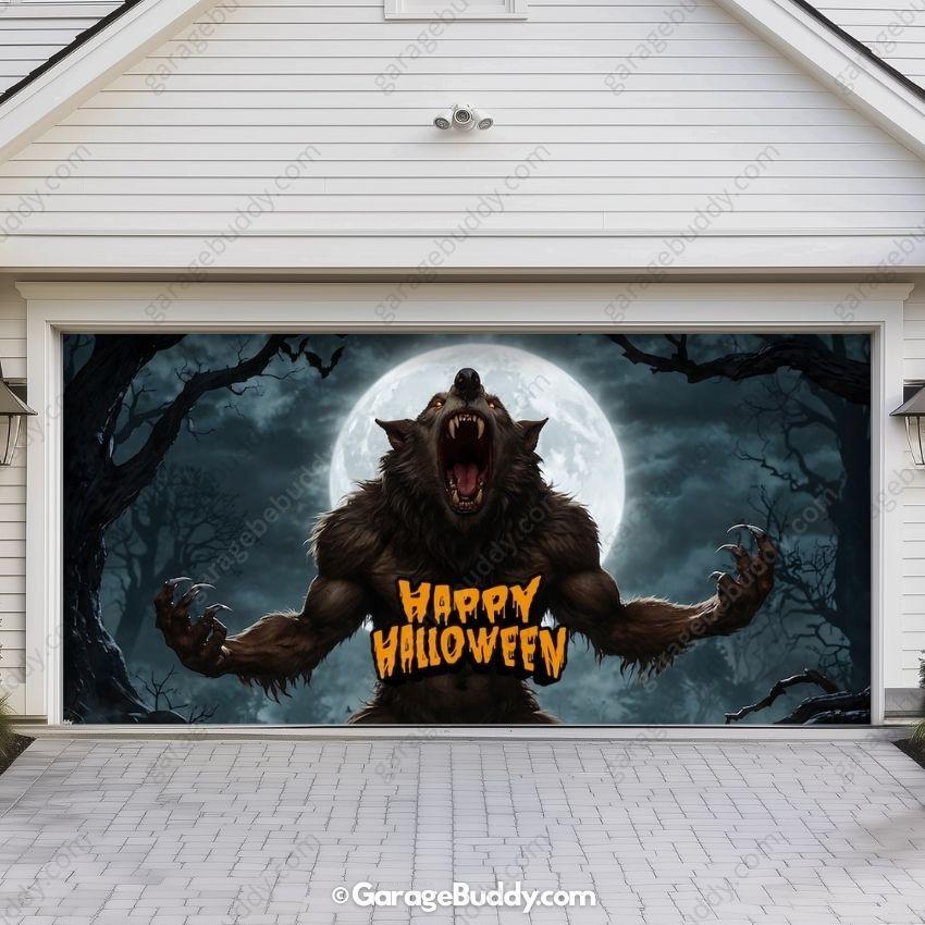 Unleash the beast with a Werewolf Scene Halloween Garage Door Cover! This heart-pounding design features a colossal werewolf growling menacingly in a shadowy forest. A ghostly full moon bathes the scene in eerie light, enhancing the werewolf’s fearsome presence and transforming your garage into a chilling nocturnal nightmare. This spooky garage door cover instantly makes your house the star of the neighborhood.